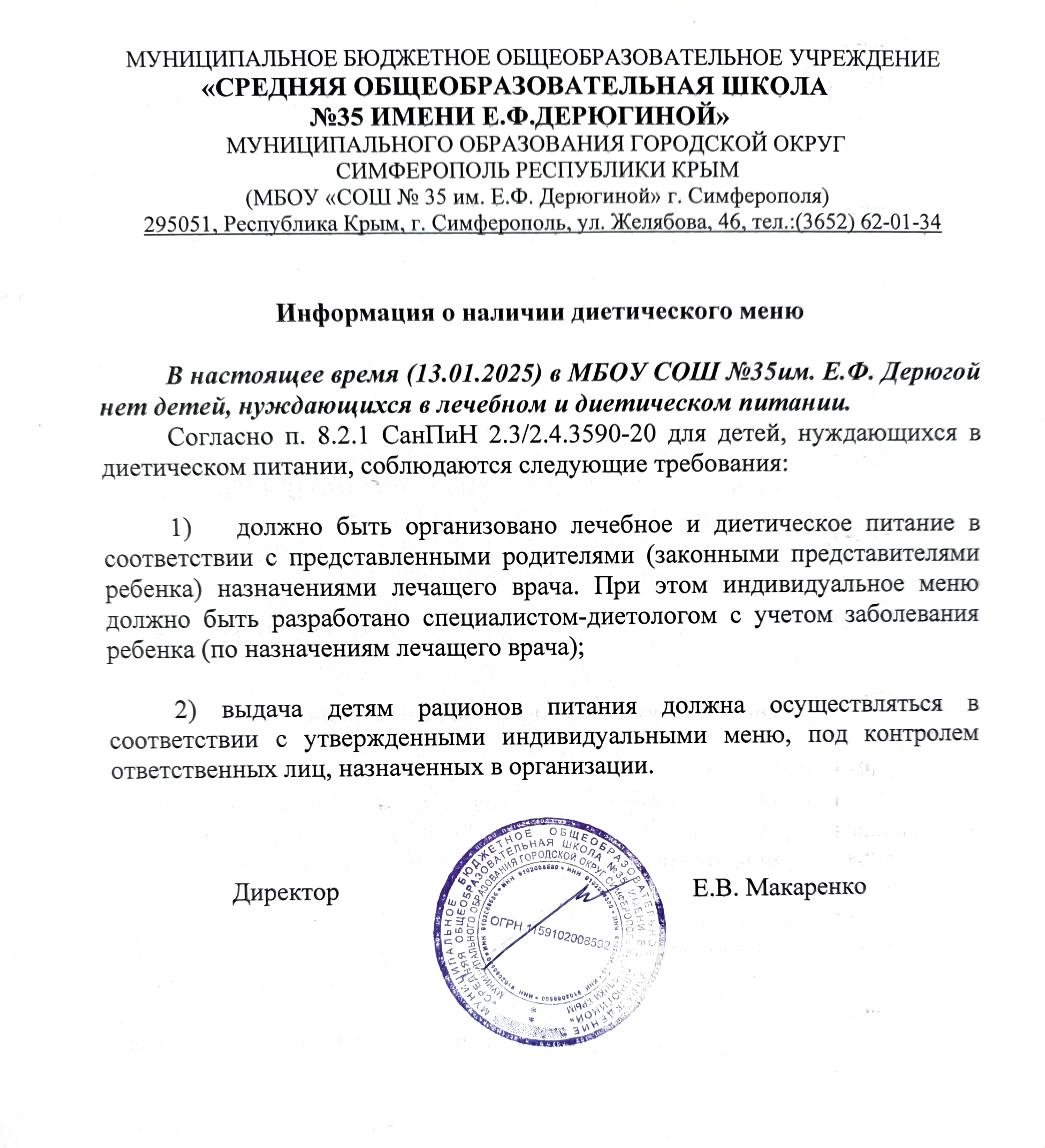 Муниципальное бюджетное общеобразовательное учреждение «Средняя общеобразовательная школа №35 имени Е.Ф. Дерюгиной» муниципального образования городской округ Симферополь Республики Крым