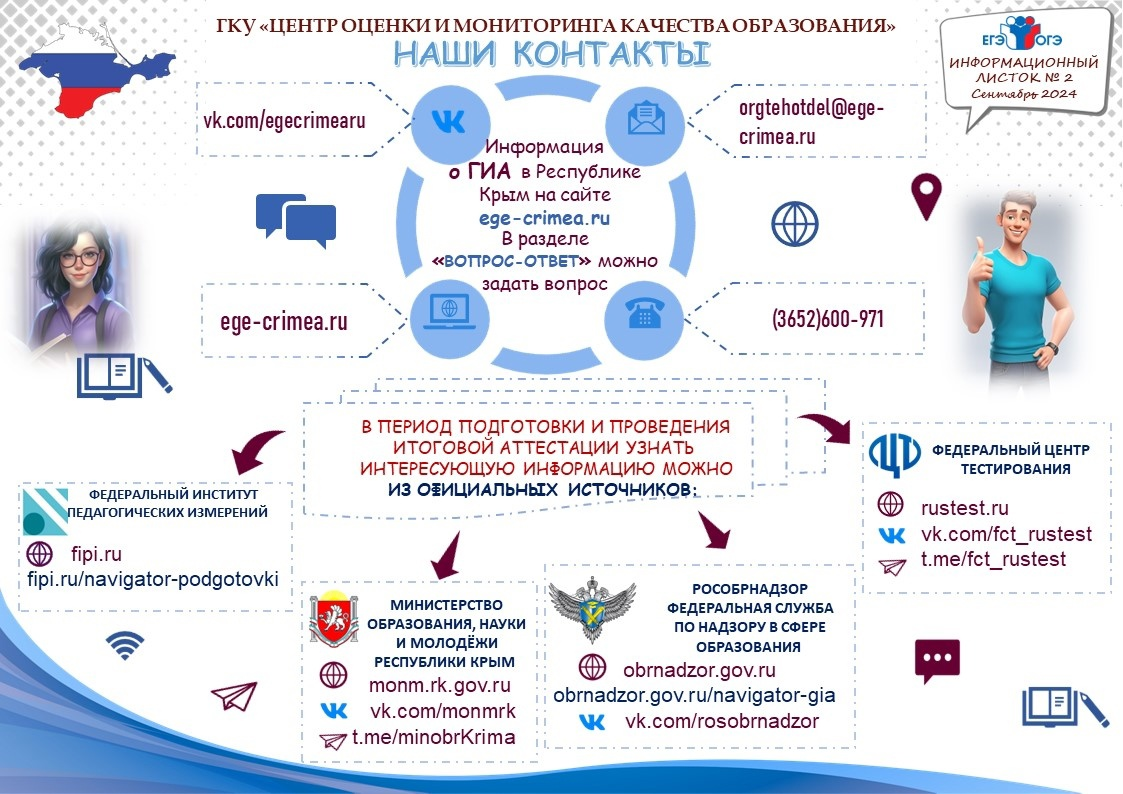 Актуальная информация о ГИА размещена на официальном сайте Рособрнадзора (https://obrnadzor.gov.ru) и в официальном телеграмм-канале (https://t.me/rosobrnadzor_official).