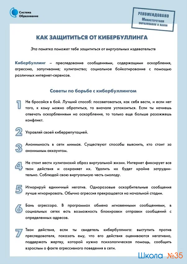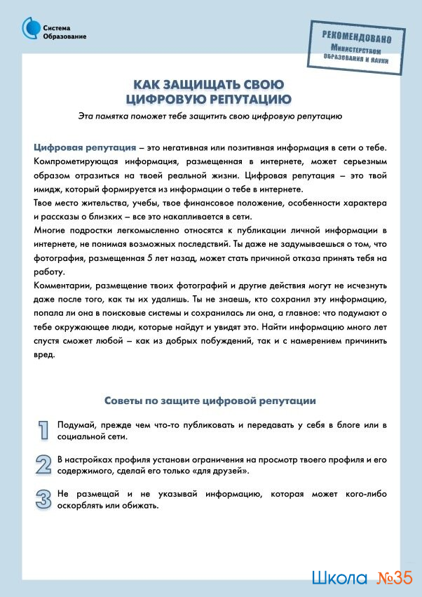 Не все пишут правду. Читаешь о себе неправду в Интернете - сообщи об этом своим родителям или опекунам;