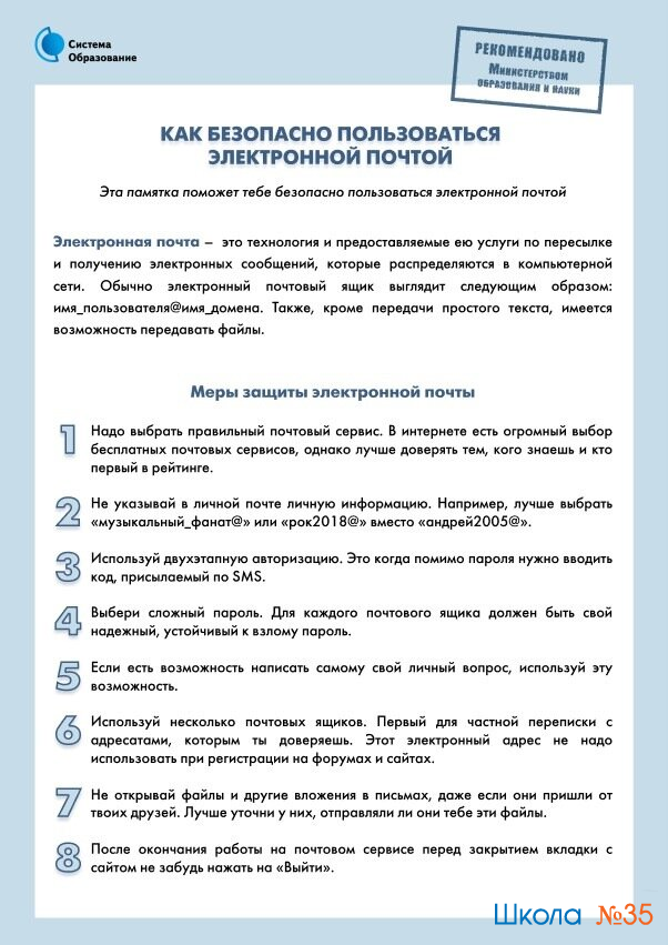 Не открывай файлы и другие вложения в письмах, даже если они пришли от твоих друзей. Лучше уточни у них, отправляли ли они тебе эти файлы;