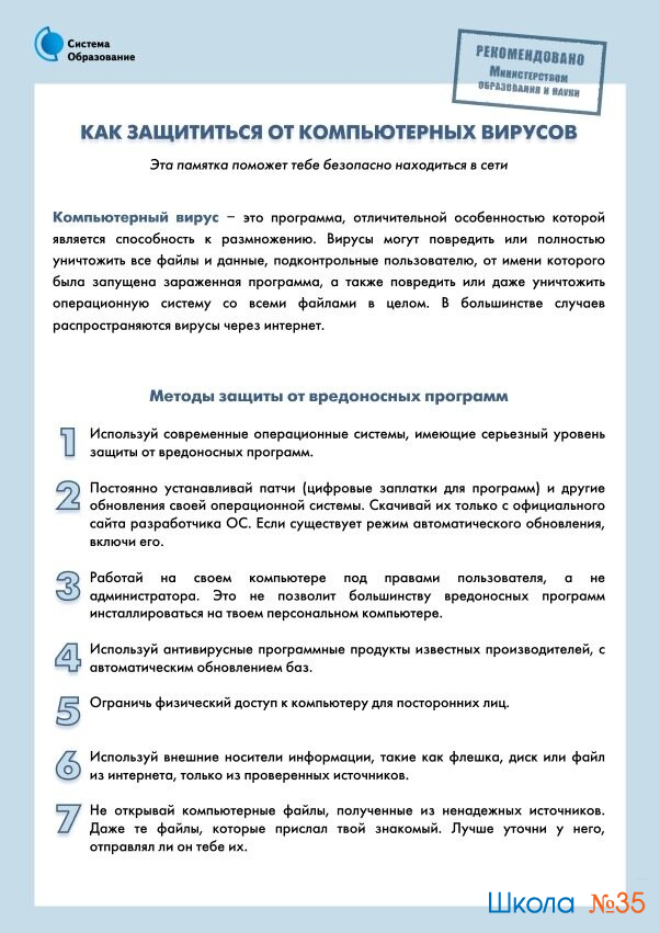 С каждым годом молодежи в интернете становиться больше, а школьники одни из самых активных пользователей Рунета. Между тем, помимо огромного количества возможностей, интернет несет и проблемы. Эта памятка должна помочь тебе безопасно находиться в сети.